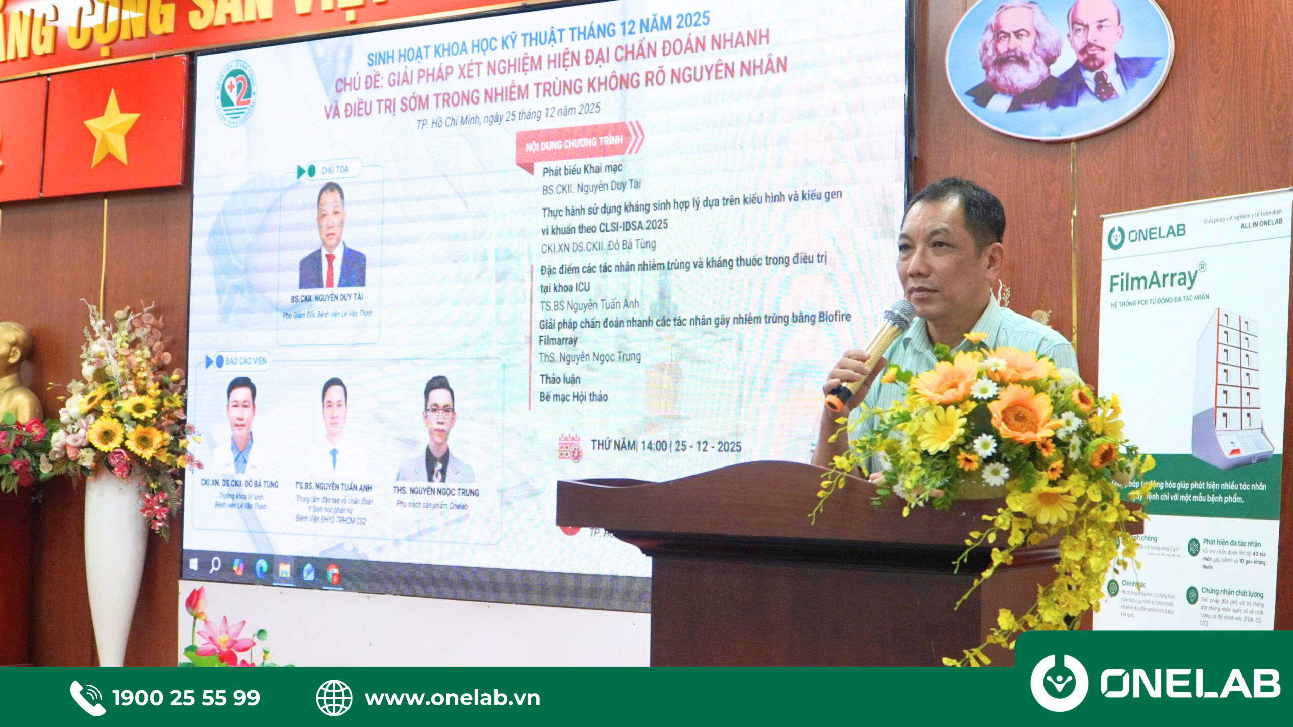 Ngày 25/12/2025, OneLab phối hợp cùng Bệnh viện Lê Văn Thịnh tổ chức buổi sinh hoạt khoa học kỹ thuật với chủ đề: “Giải pháp xét nghiệm hiện đại chẩn đoán nhanh và điều trị sớm trong nhiễm trùng không rõ nguyên nhân.”